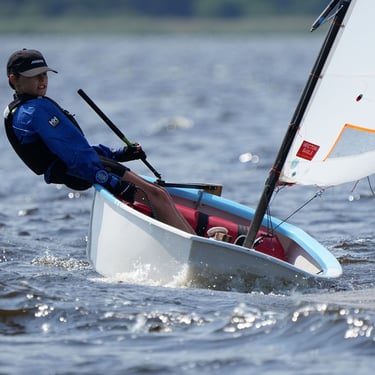Jestem zawodnikiem UKS "Szkwał". Ścigam się w klasie Optymist A.